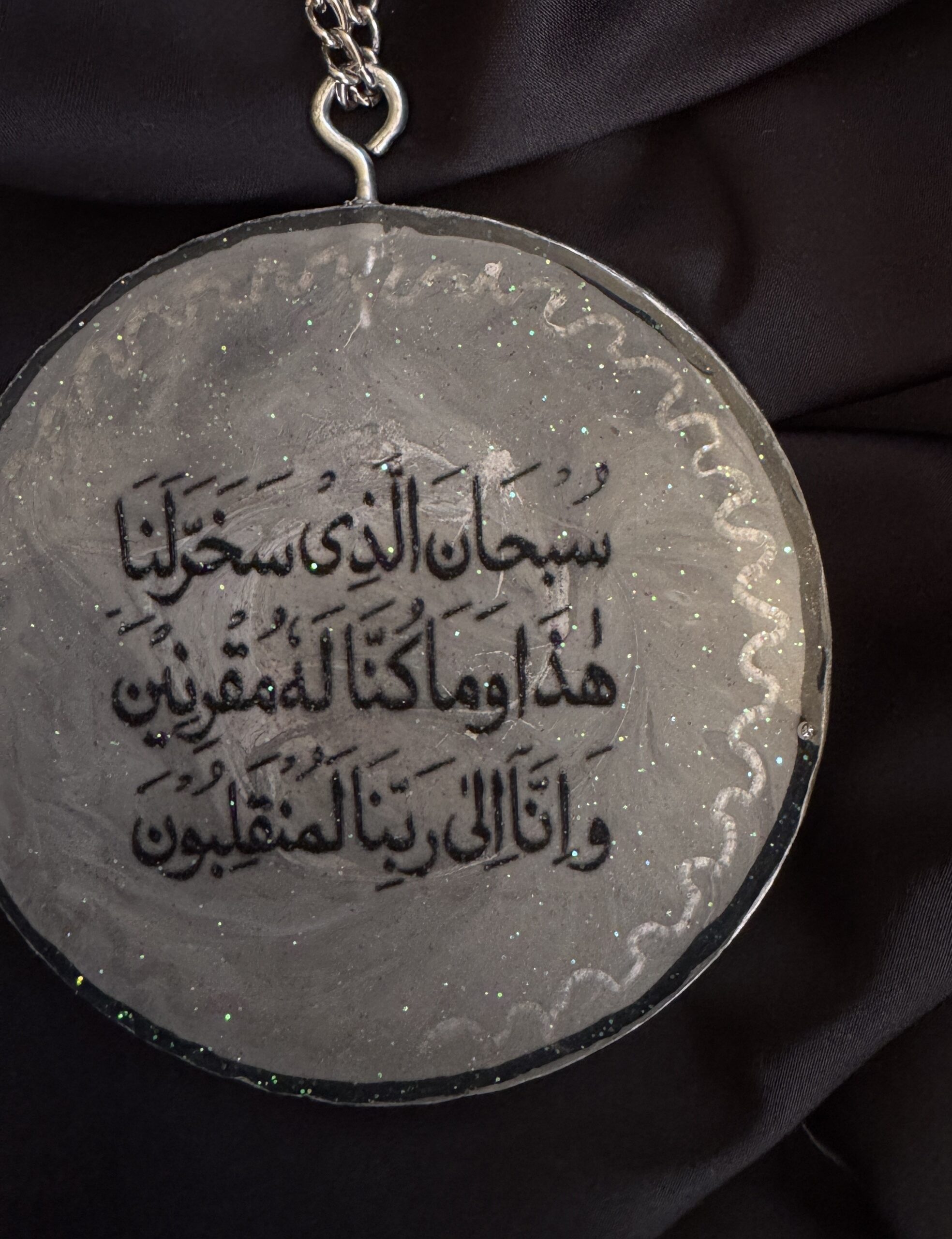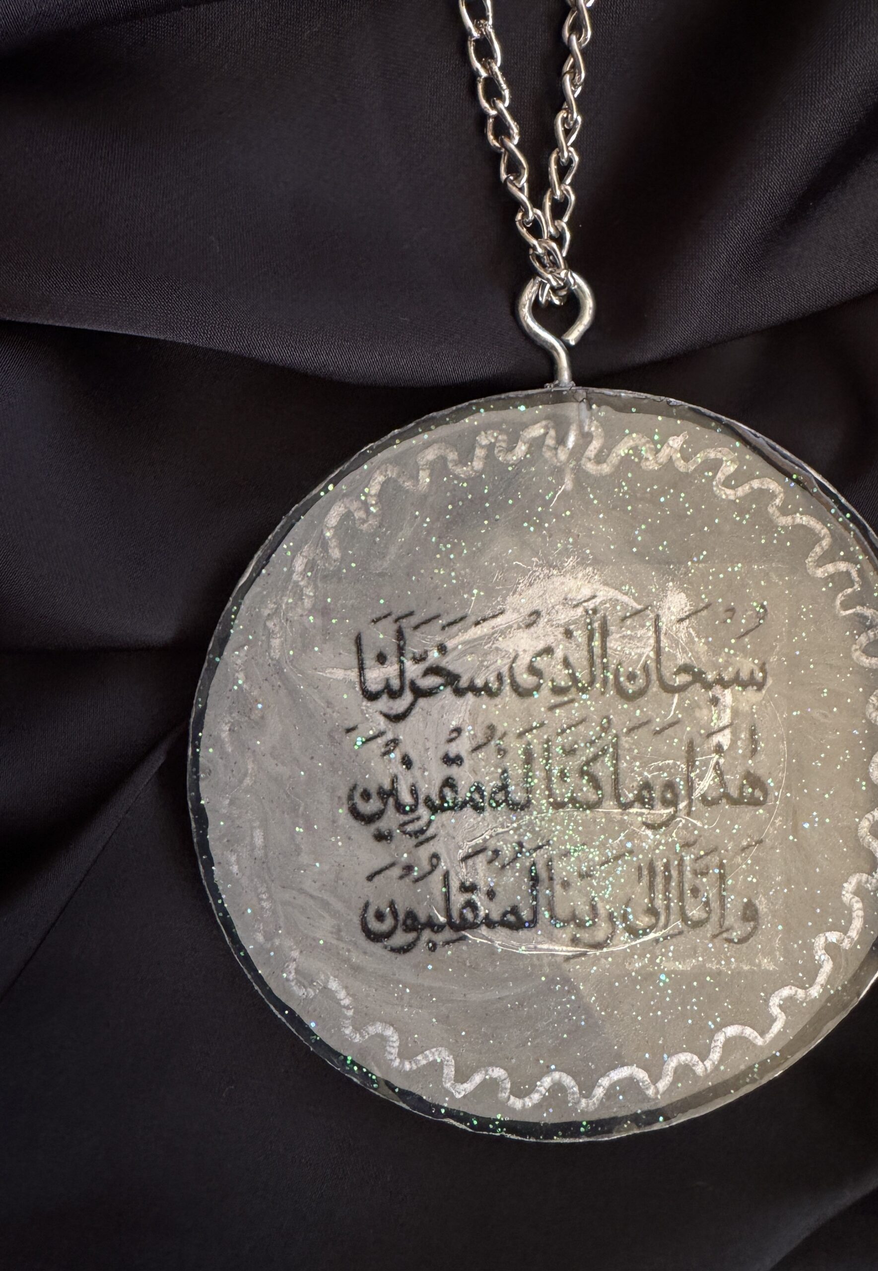 Drive with grace and style, Our new Shimmering Silver Resin Car Hanging adds a touch of modern elegance to your car’s interior. Infused with dazzling silver glitter and featuring beautiful Arabic calligraphy for a meaningful journey. Discover affordable prices of high quality resin products in Pakistan. It’s the perfect accent to personalize your car. Our Shimmering Silver Resin Car Hanging is here to elevate your car’s aesthetic with a touch of spiritual beauty.